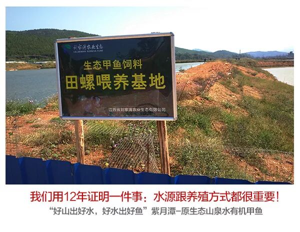 刘家湾生态养殖周边无污染,环境清静,养殖用水水源来自海拔860米紫龙谭山泉水,水质“0”污染,富含天然微量元素.水质条件优越,是养殖生态甲鱼最理想的场所.