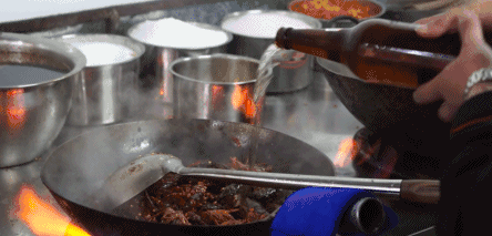 厨师将毛肚处理的很干净,完全没有异味。选用大小比例相近的腌瓜一同爆炒!毛肚上细密的绒毛,夹起时会携带香浓的汤汁,十分入味~秘制的腌瓜更是爽脆可口~