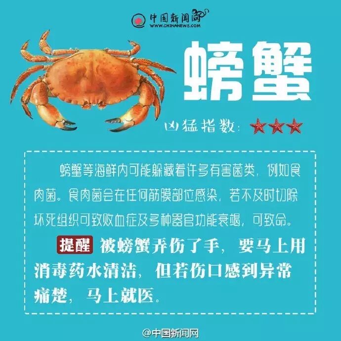 螃蟹虽然美味,但在处理和食用时也需小心注意。最近广州就有两位病人因为处理螃蟹和食用螃蟹,一个不治身亡,一个险些丧命……