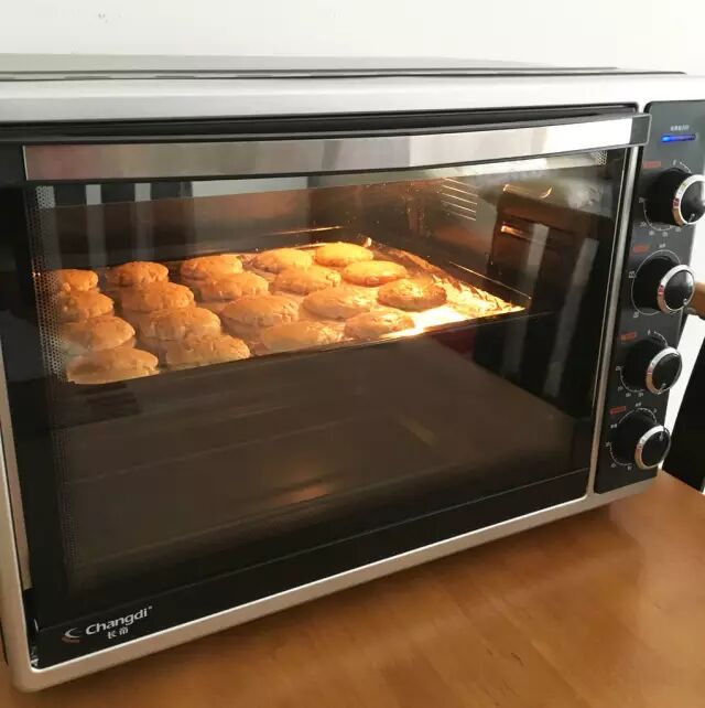 9、烤箱上下火180度预热,预热好之后将烤盘放至烤箱中上层,大约15分钟。大家请根据自家烤箱脾气设置温度,根据饼胚大小设置时间。