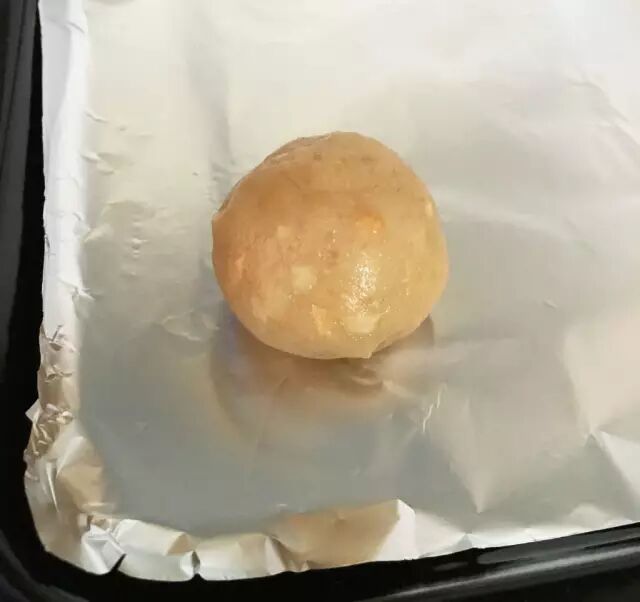 7、取大约15克面团揉成圆形,摆入烤盘。