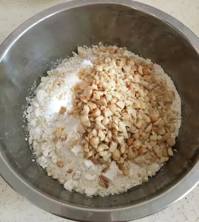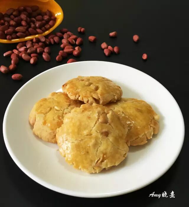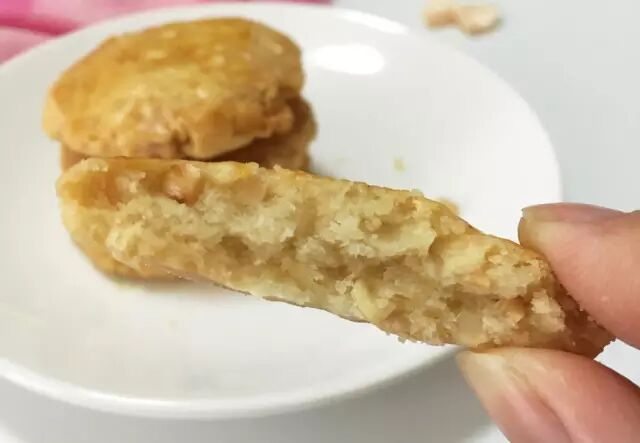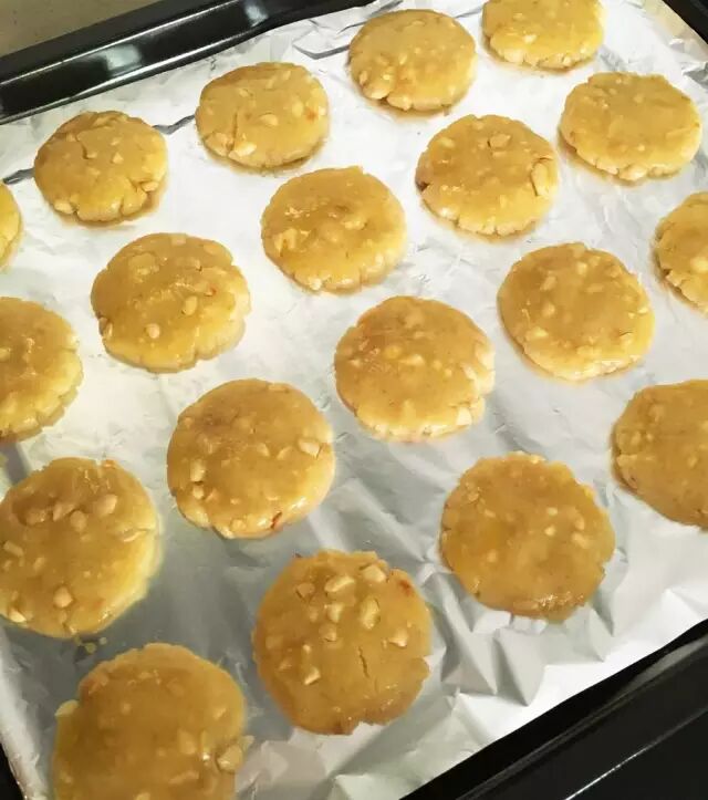 2、花生不要擀得太碎,颗粒稍大一些,这样不够贴合密实的饼干胚烤出来之后才会更加酥脆。这就是不加泡打粉和小苏打烤出来的酥饼依旧酥脆的原因之一哦!