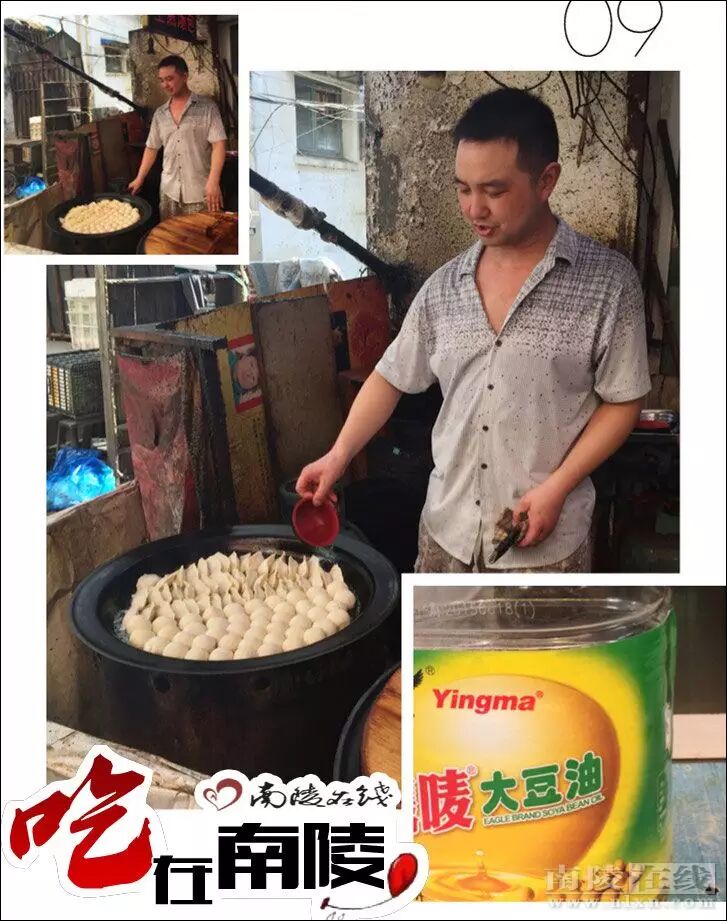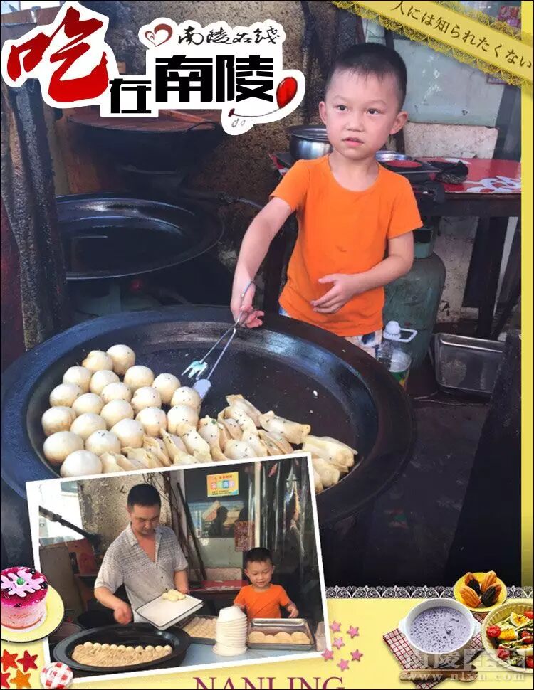 要想每一只生煎汤包和锅贴都可以上软,下脆,就只有靠陈师傅多年来的经验和技巧了,最后撒上一层芝麻和葱末,让生煎汤包的香味发挥到极致。陈师傅来到南陵已经十几年了,如今也在南陵安了家,儿女双全。采访过程中可爱懂事的儿子一直在帮着父亲忙前忙后,人小鬼大的。陈师傅已离不开南陵人,南陵人也离不开陈师傅的生煎锅贴了,无论是这样炎热的夏季来上一份,可以打发早餐,也可以用来对付晚餐,还是冬天的早晨来上一份热气腾腾的生煎包,都是可以的。因为陈师傅一般早上5点多就出摊了,下午四点多的时候也会准时出现在巷子口,每天4000多只的生煎和饺子卖出。配上一碗陈师傅自己做的豆腐脑,惬意的一天就这样开始了。