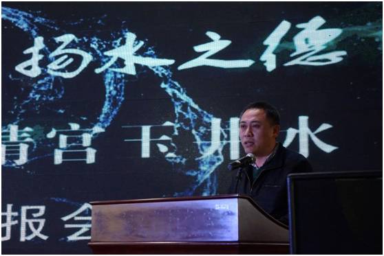 崂山太清宫监院李宗贤道长首先做了致辞。可以听得出,一向低调的李道长话语间十分激动噢!他说,通过长期饮用玉井水,发现其水质温润,对身体非常有益。通过专家教授们对崂山太清宫玉井水的勘测和检验,发现崂山太清宫玉井水源自于亿万年前,流淌于崂山玉脉带,富含多种对身体有益的微量元素,这么好的水,应该推到市场上与更多的人分享。