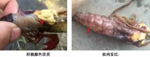 部分虾尾部肌肉发红或者呈现白浊样。