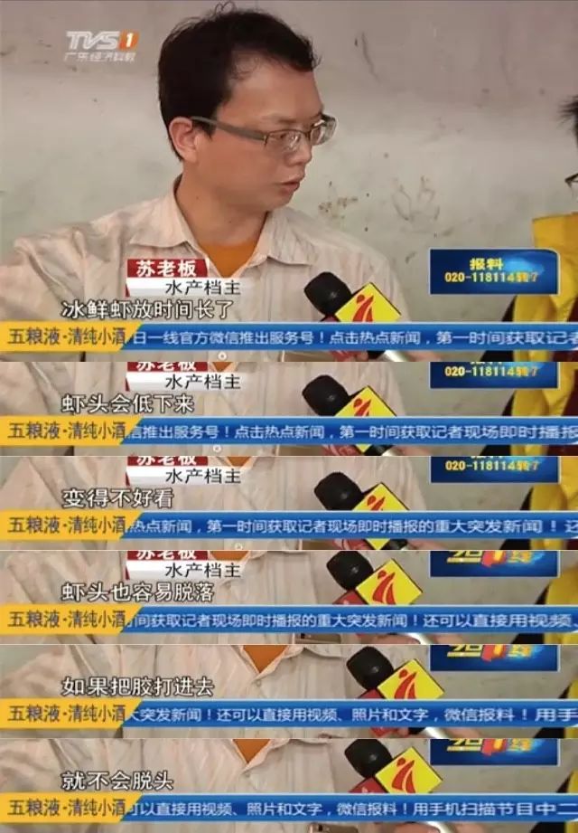 记者来到了其中一名网民卖虾的地方,广东普宁占陇市场。有水产档主看过视频后告诉记者,这些就是传说中的注胶虾,是不法商贩人为地将明胶注射进虾体内。这不仅能增加虾的重量,而且还可以避免冰鲜后的虾头出现凹陷、塌瘪等现象,使虾显得更饱满、新鲜。