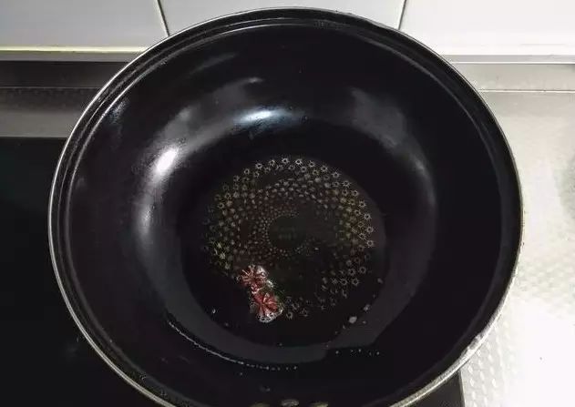 2、热锅凉油,放入八角小火煸出香味