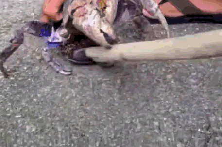 有人强行从椰子蟹钳下夺下这根可怜的木棍