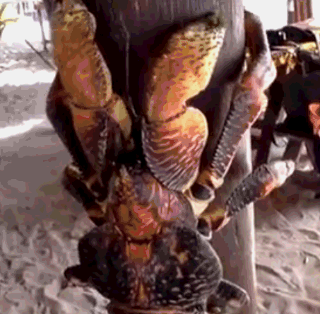 并且成年后的它们会进化出全新技能:爬上十几米的树,用钳子剪下椰子。