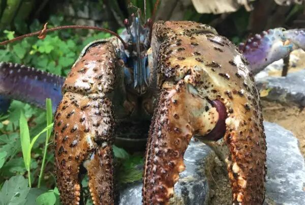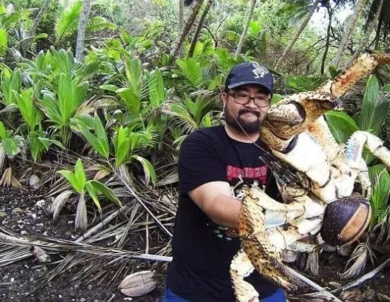 成年后的椰子蟹身高可达1米,体重6kg。体型如此巨大的原因是:它们一辈子都是生长发育期,生长速度超慢,而寿命长达60年之久。所以体型越大意味着这蟹越老。