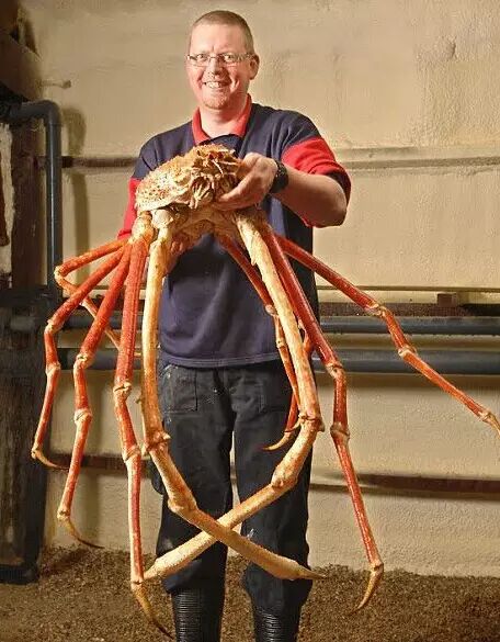 这家伙蟹爪完全伸展跨度可达到4米,虽然长得吓人,但却没有一双强有力的臂弯,仍然会被人类调戏,甚至让它夹一下。