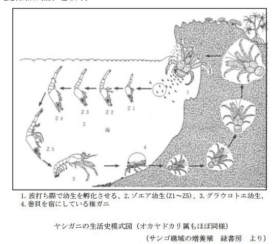 甲壳逐步硬化蜕皮后开始上岸生活,只有繁殖季节雌蟹才会把卵排到海里。