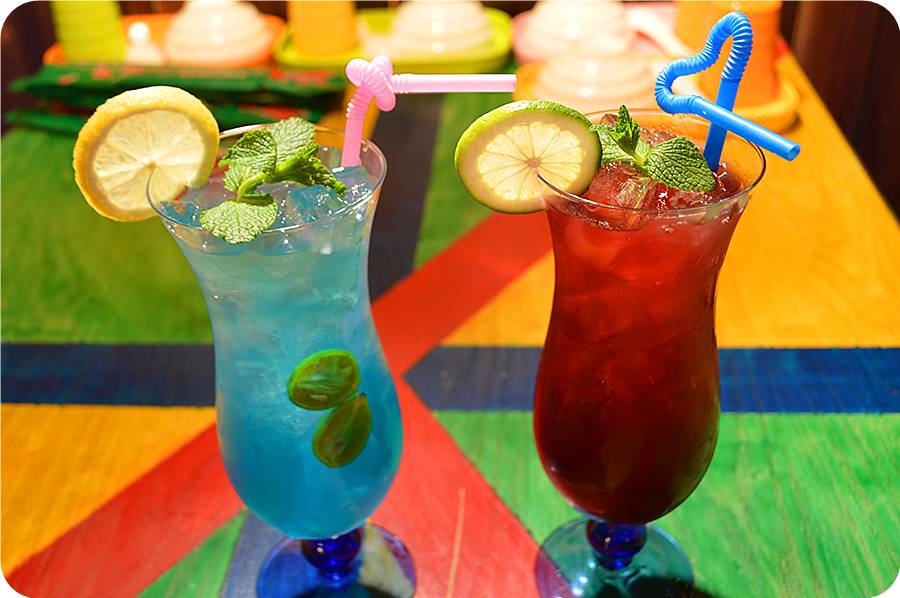 他家的气泡水也比较多,红的是红粉依惜,蓝的是蓝色妖姬,里面都很贴心的放了很多的冰块,配着劲爆的泡椒牛蛙煲是最好不过了……