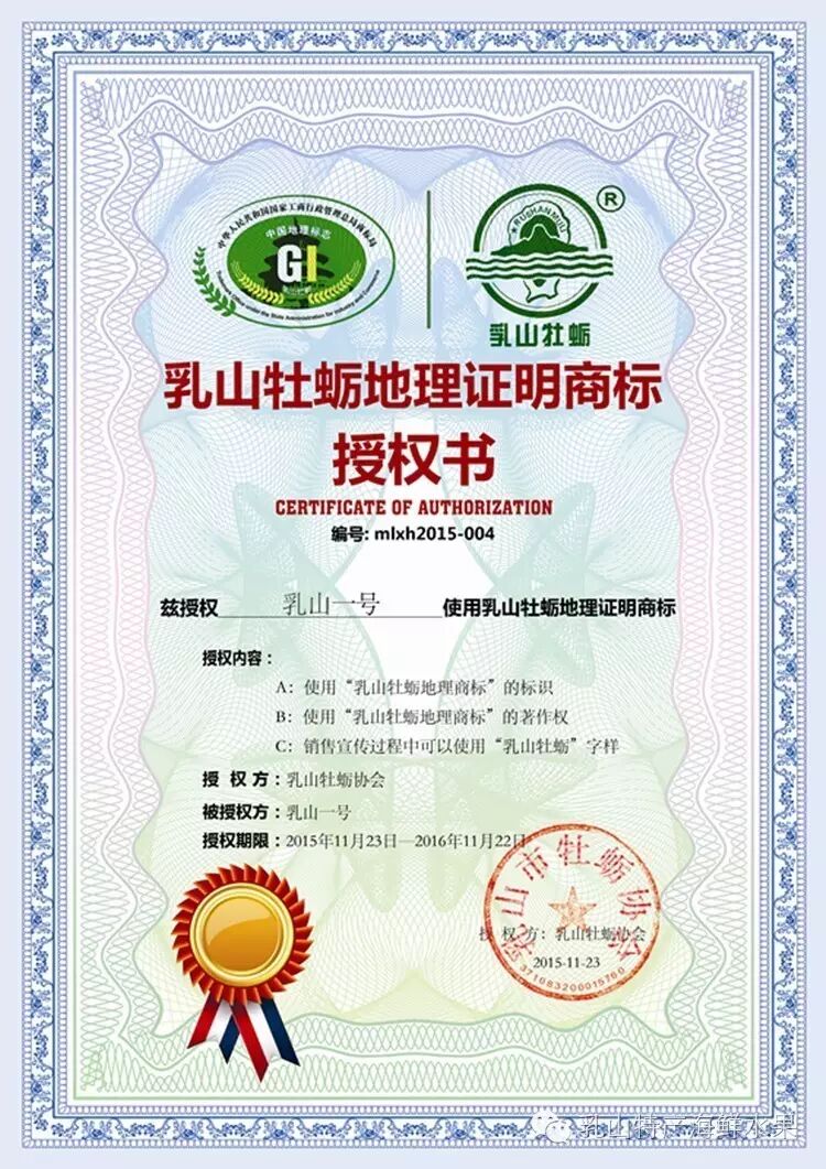 2009年“乳山牡蛎”获批国家地理标志商标。