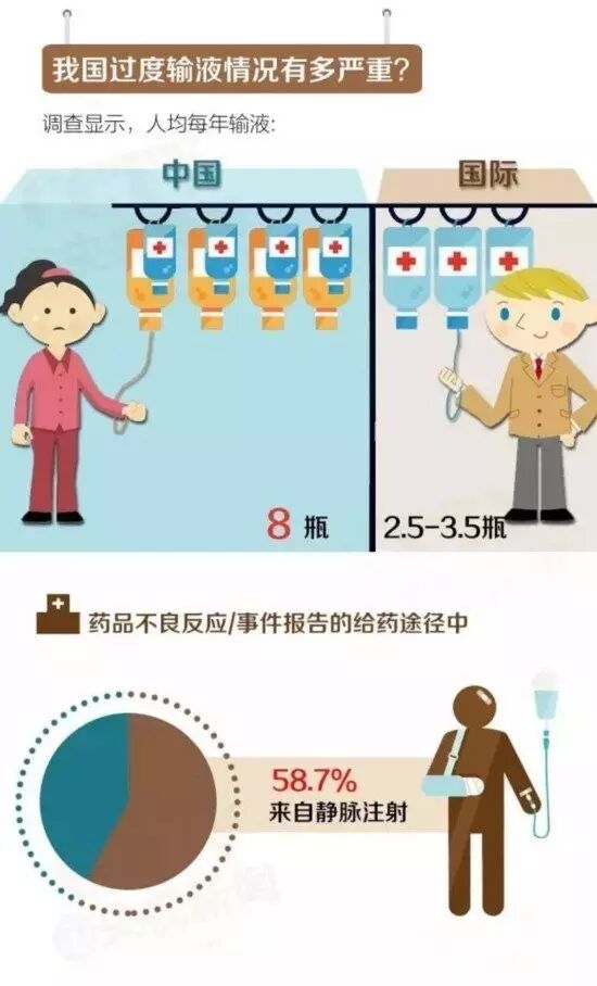 中国,一个被吊瓶绑架的神奇国度,上到当红巨星,下到贫民百姓,甚至还有中医院的教授,居然都选择用输液来治疗感冒,输液疗法之滥用,可见一斑!于是“央视”说了这样一句话:
