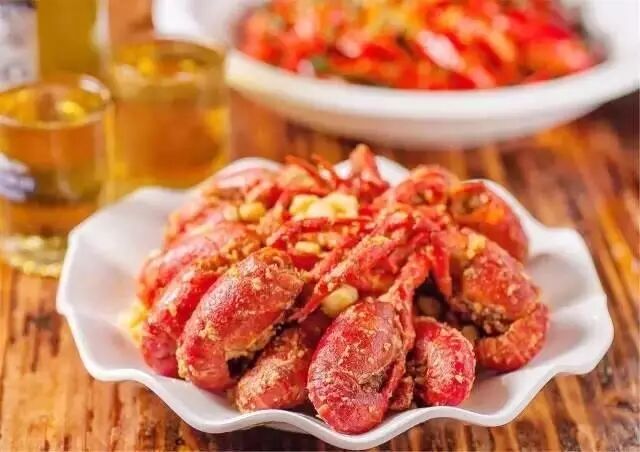 金沙小龙虾 | 也就是咸蛋黄小龙虾,吃的时候先轻轻吮吸虾壳表面的蛋黄,再剥壳品尝紧实的虾肉,两者味道相吸,非常独特。