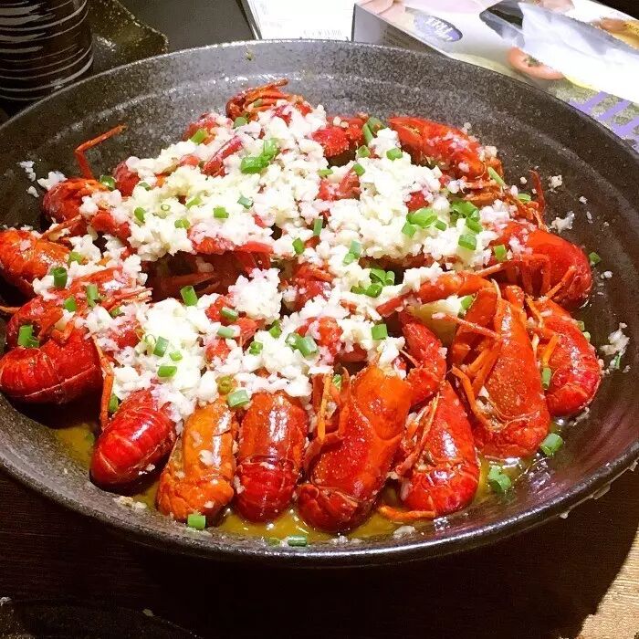 蒜香小龙虾 | 偏辣,蒜巨多,对于爱吃蒜的人会非常满足,配菜也很好吃,根本停不下来!一切蒜香味的食物都是磨人的小妖精。