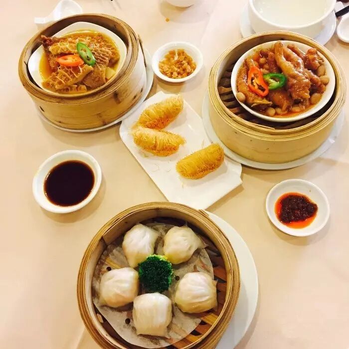 店里的点心也做的非常好,一如既往点了虾饺,蒸排骨、凤爪、金钱肚,分量十足,榴莲酥超酥脆。惊喜的是虾饺加入了香芹,味道瞬时有亮色!