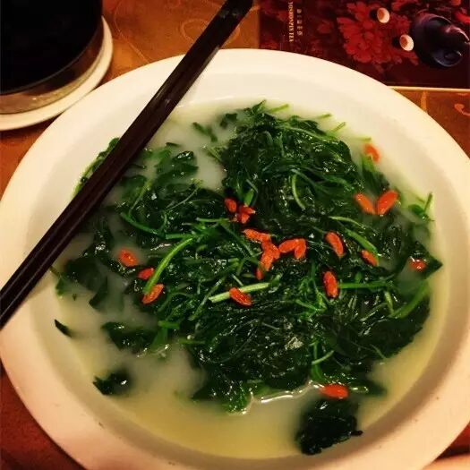 枸杞菜 | 第一次吃,卖相很好,几颗枸杞点缀好看又让人食欲大增。量很大。