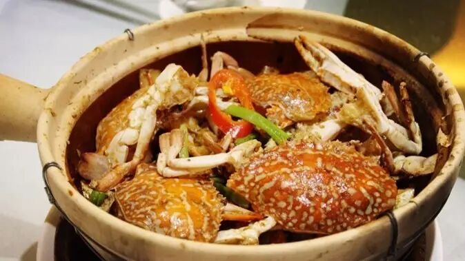 啫啫姜葱花蟹 | 啫啫姜葱花蟹的蟹肉鲜甜美味,原汁原味。花蟹新鲜,平时都是食姜葱炒花蟹,这次觉得啫啫煲更加能锁住花蟹的鲜香味。