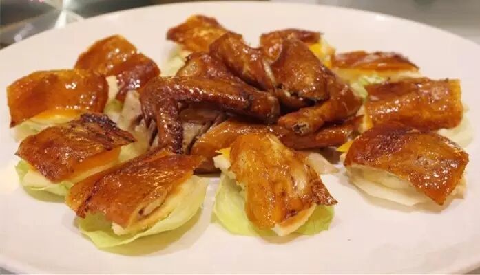特色片皮鸡 | 特色片皮鸡是店里的特色,几乎每桌必点。鸡皮香脆可口,搭配新鲜芒果、雪饼和沙拉酱,丰富的层次感一口接一口,这么清新的搭配,一点都不觉得腻。