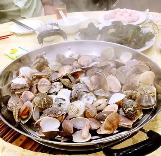 店门口有大大的玻璃缸和箱子装着各种海鲜,都很新鲜,贝类特别多,自助即蒸即吃很鲜甜。记得最后吃锅底粥时跟服务员要一碟姜丝去腥,粥里汇聚了海鲜的精华,很鲜甜。价格适中。
