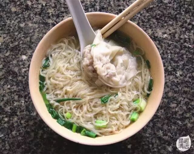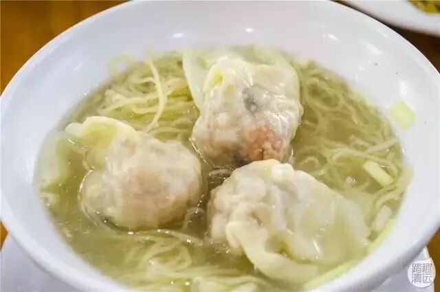 这一碗云吞面,汤很清,云吞大小适中,入口很滑,筷子夹着面条往上扯,面条却往下用力,回弹有力。
