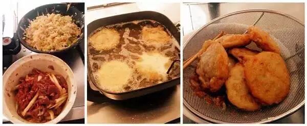 牛肉糍也是这里的特色之一。牛肉先用蒜苗、姜片腌好,放进萝卜丝,再裹一层面粉下油锅炸。黄澄澄的看得口水直流。