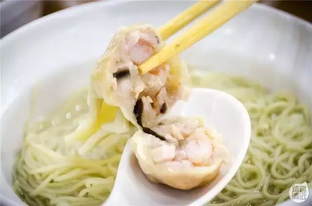 每颗20克重的云吞内有猪肉、鲜虾、香菇和蟹籽,竹升云吞皮爽滑不烂。竹升面好有劲!筷子就这样往上拉,面条还懂得“发力”反拉手下去。