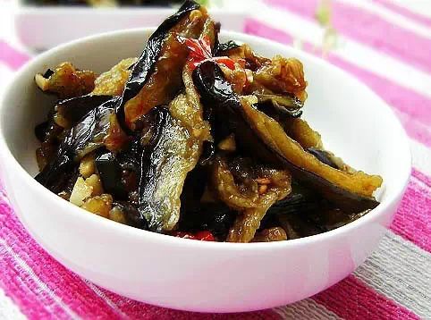 1.茄子切长条浸泡在冷水中20分钟。这样即省油,又不会让茄子变色。