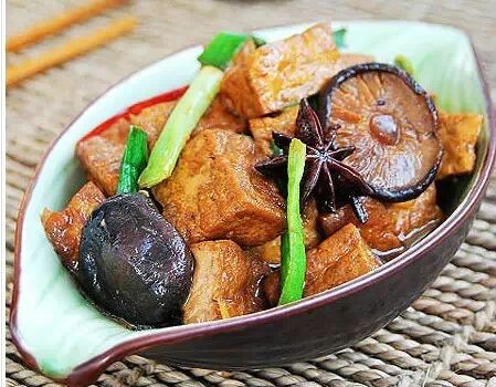 食材:北豆腐1块、干香菇6朵、姜1小块、大料1粒、花椒8粒、桂皮1小段、老抽1/2小匙、生抽1大匙、蘑菇粉、糖各1小匙、香油少许、盐适量。