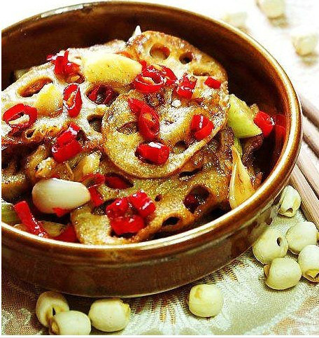 食材:莲藕1节(300g)、芹菜1根、小米椒2只、、辣椒酱1茶匙、生抽1茶匙、油4大勺