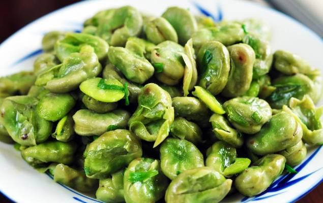 食材:嫩荷兰豆300克、橄榄菜一小勺,油两匙、盐少许、